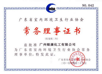 我公司于2010年4月25日獲得《廣東省室內(nèi)環(huán)境衛(wèi)生行業(yè)協(xié)會(huì)常務(wù)理事證書(shū)》,正式成為廣東省室內(nèi)環(huán)境衛(wèi)生行業(yè)協(xié)會(huì)常務(wù)理事單位。