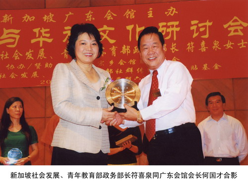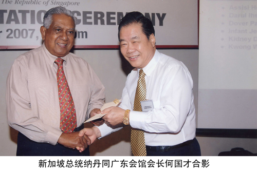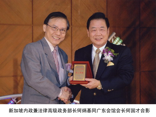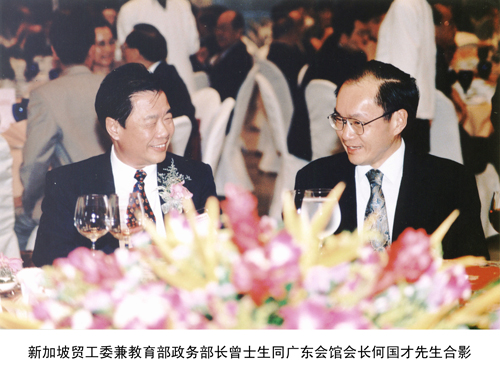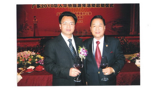 廣東省僑聯(lián)主席王榮寶同董事長何國才先生(右)合影