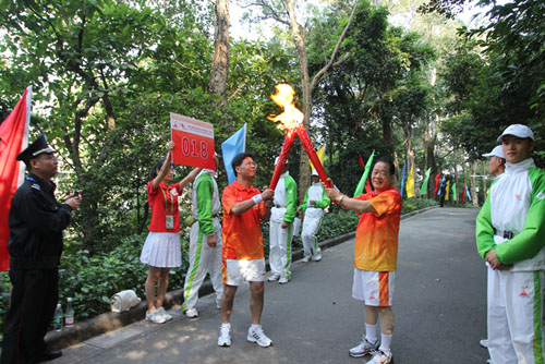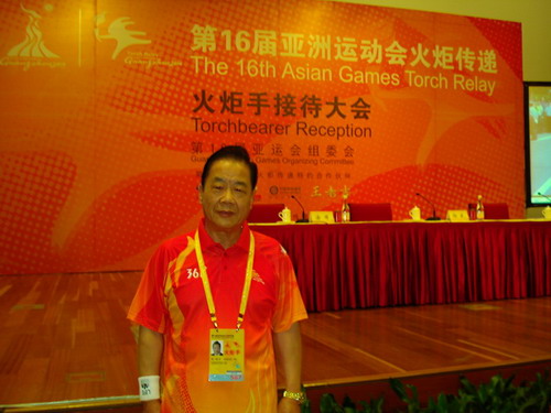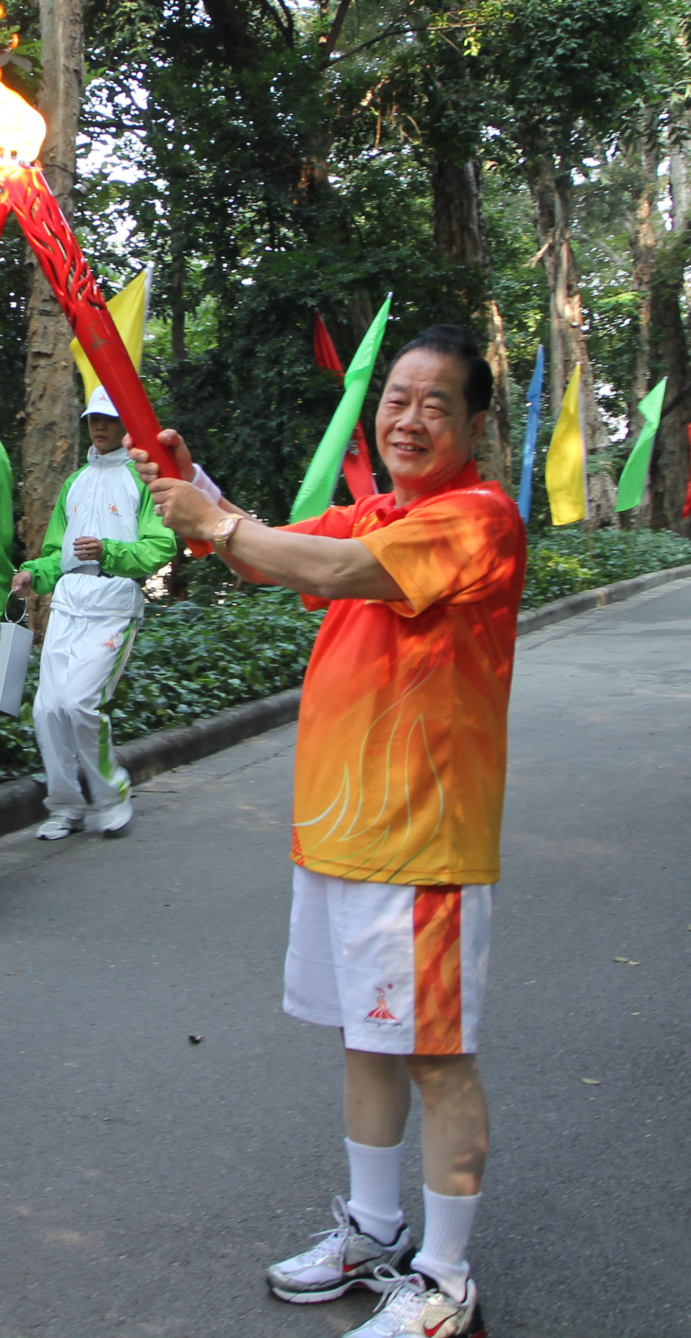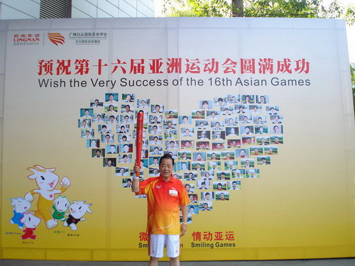 我司董事長何國才先生(新加坡廣東會館會長、廣東省海外交流協(xié)會理事、廣州市海外交流協(xié)會理事)榮為亞運會火炬手,于2010年11月9日上午9點在越秀公園參加了亞運會火炬?zhèn)鬟f。以下是何國才先生參加亞運會火炬?zhèn)鬟f的相關(guān)圖片: