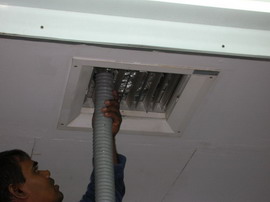 銀康處理前供風(fēng)口非常骯臟 在處理風(fēng)管前先把供風(fēng)口封住以防止灰塵進(jìn)入室內(nèi)
