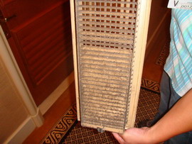 銀康處理前供風口的柵格 銀康處理前風機盤管的風管