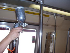 用蒸汽清潔車(chē)廂表面 噴涂銀康納米銀和光觸媒