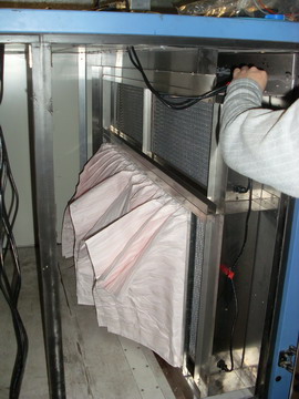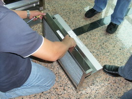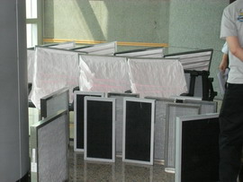 正在安裝過濾網(wǎng)的框架 安裝好DF過濾網(wǎng)的風(fēng)柜