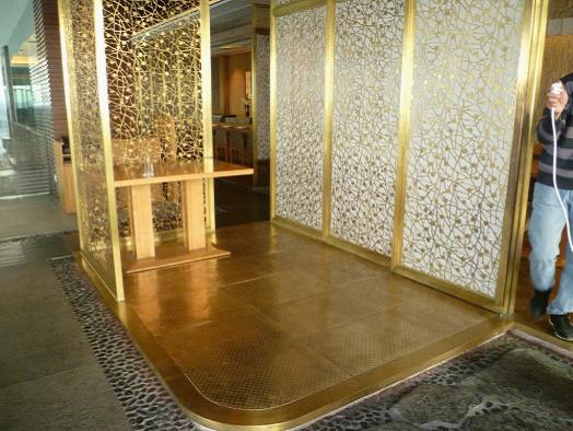 施工地點(diǎn):香格里拉酒店三樓灘萬(wàn)餐廳大廳及包房銅地板區(qū)域