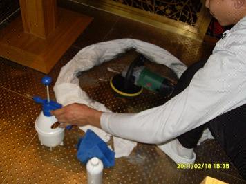 工程名稱:灘萬(wàn)餐廳銅地板抗氧化處理