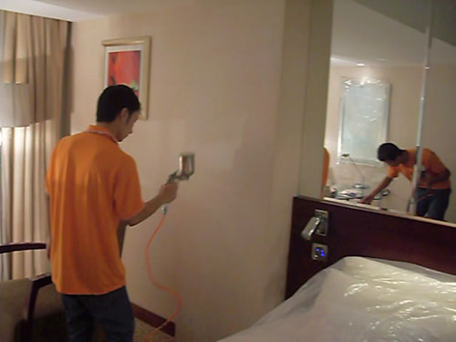 一、工程概況項(xiàng)目名稱:廣州總統(tǒng)大酒店620客房空氣凈化工程地址:廣州市天河區(qū)天河路586號(hào)工程內(nèi)容:客房的表層處理二、施工現(xiàn)場 廣州總統(tǒng)大酒店620客房 施工前檢測 施工前保護(hù) 銀康光觸媒噴涂墻壁