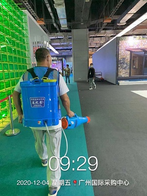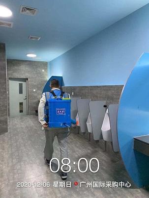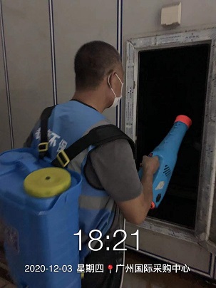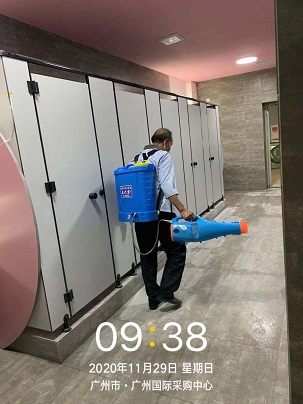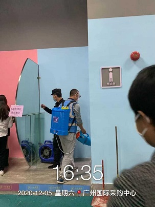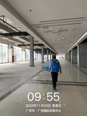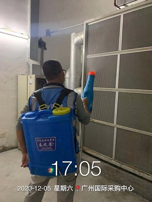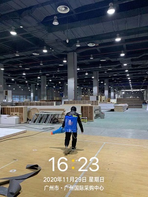 2020年11月29日至12月7日,銀康進行廣州國際采購中心展館-廣州設(shè)計周展會保潔及防疫消毒服務(wù)。 設(shè)計周開展期間: 空調(diào)機房消毒服務(wù): 展內(nèi)消毒服務(wù):
