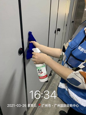 2021年3月23日-28日,銀康承包廣州國際采購中心-第十九屆醫(yī)療器械展保潔及防疫消毒服務(wù),以下是保潔及消毒服務(wù)的相關(guān)圖片: 23日: 24日: 25日: 26日: 27日: 28日: