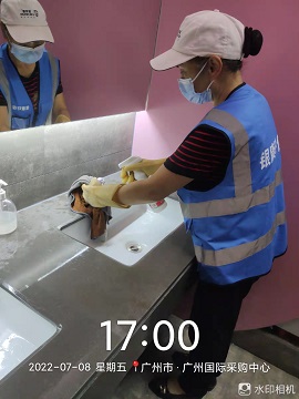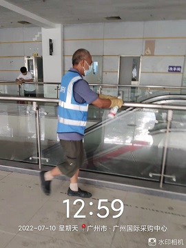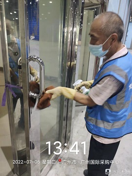 2022年7月5-11日,銀康承包廣州國(guó)際采購(gòu)中心-2022年第十二屆遮陽(yáng)門(mén)窗展覽會(huì)保潔及防疫消毒服務(wù)。 現(xiàn)場(chǎng)照片: 保潔及防疫消毒照片:
