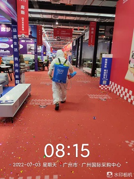 2022年6月28日-7月4日,銀康承包廣州國際采購中心展館-2022年華夏家博會保潔及防疫消毒服務。