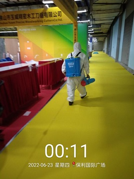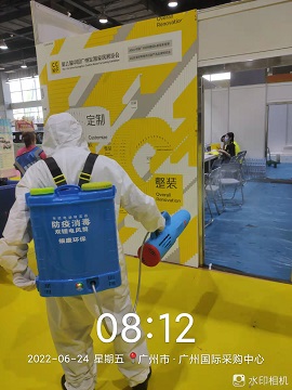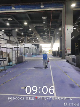 2022年6月19-26日,銀康承包廣州國際采購中心展館-第十一屆中國廣州定制家居展覽會保潔及防疫消毒服務。