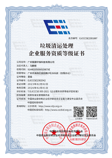 垃圾清運(yùn)處理企業(yè)服務(wù)資質(zhì)等級證書